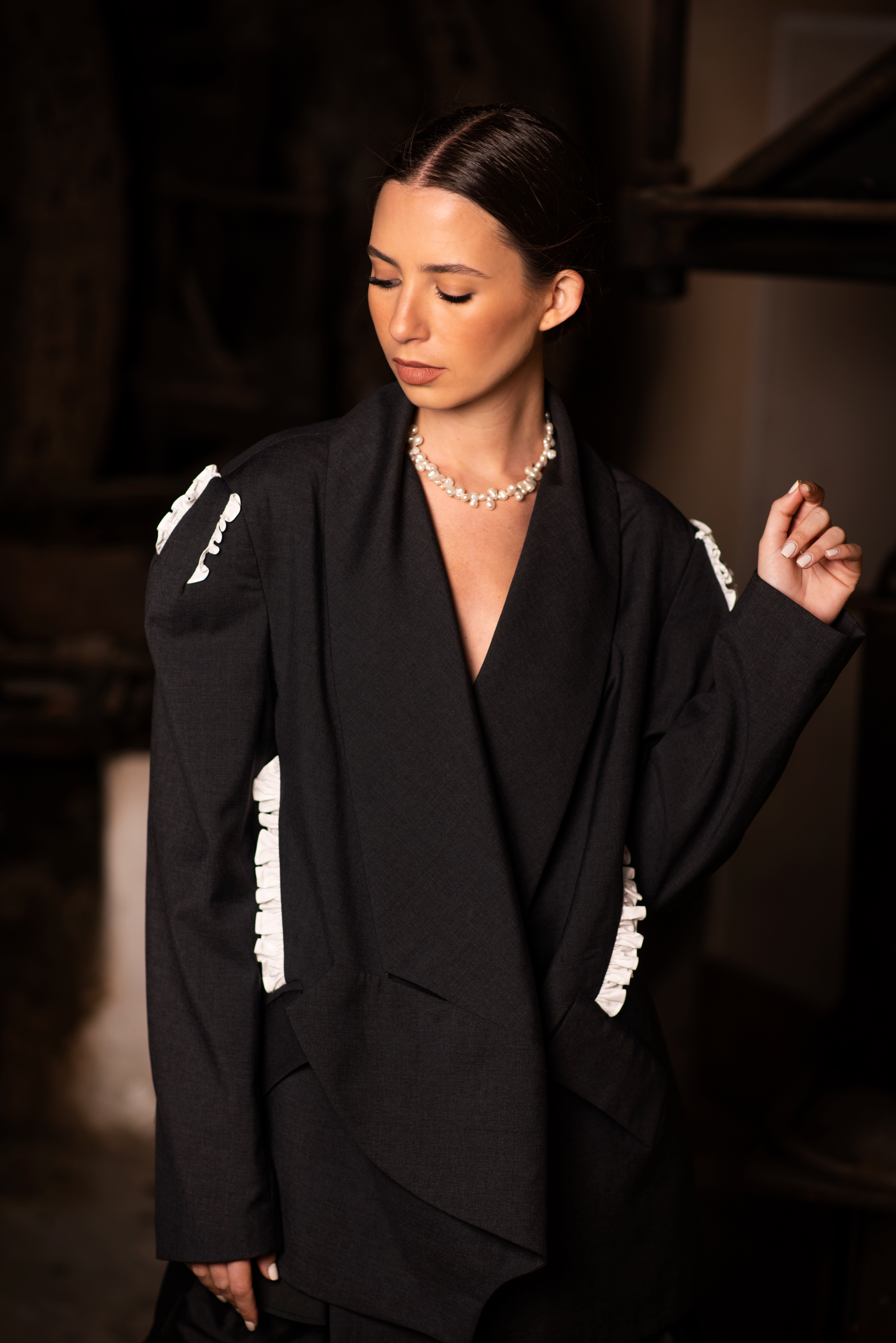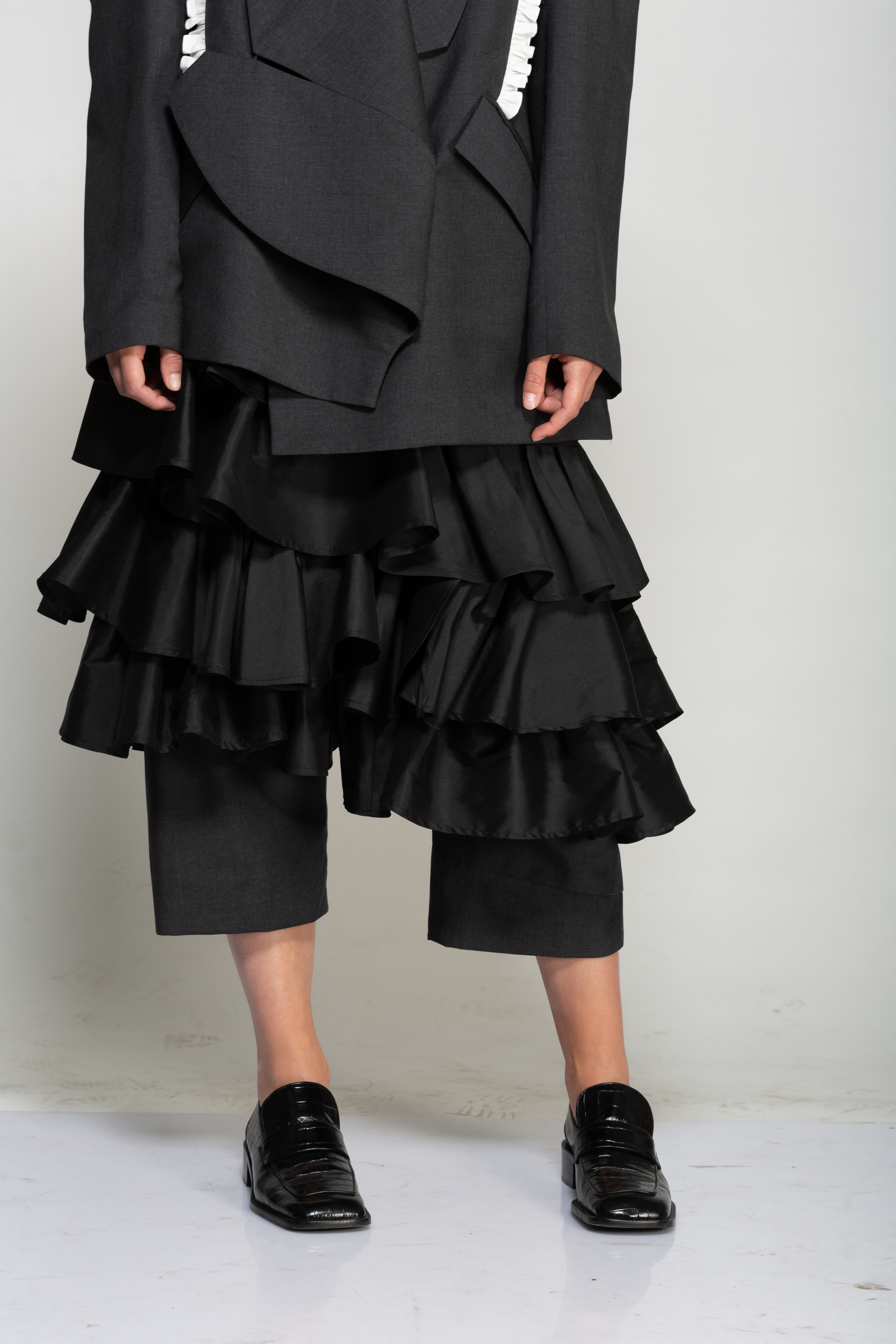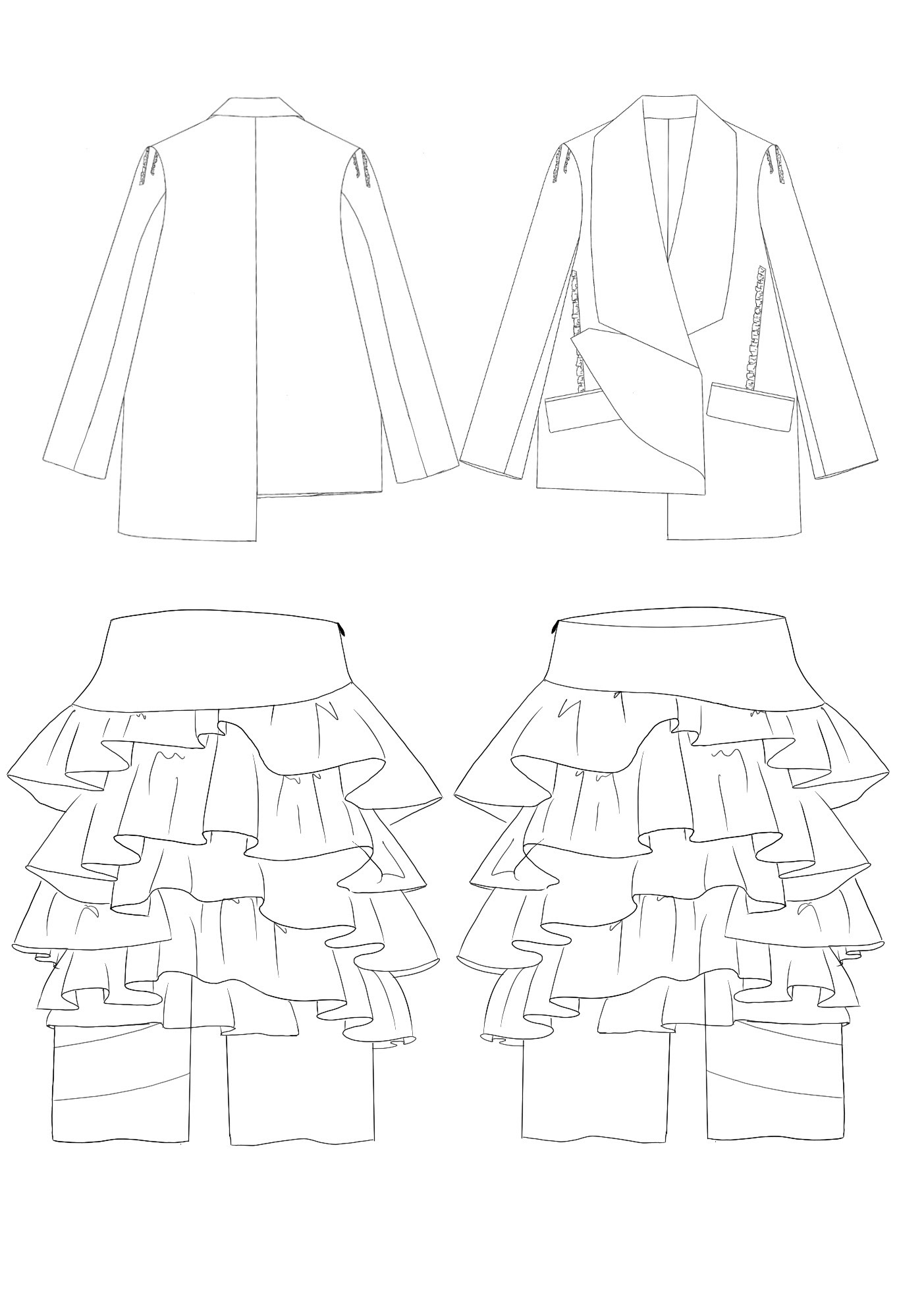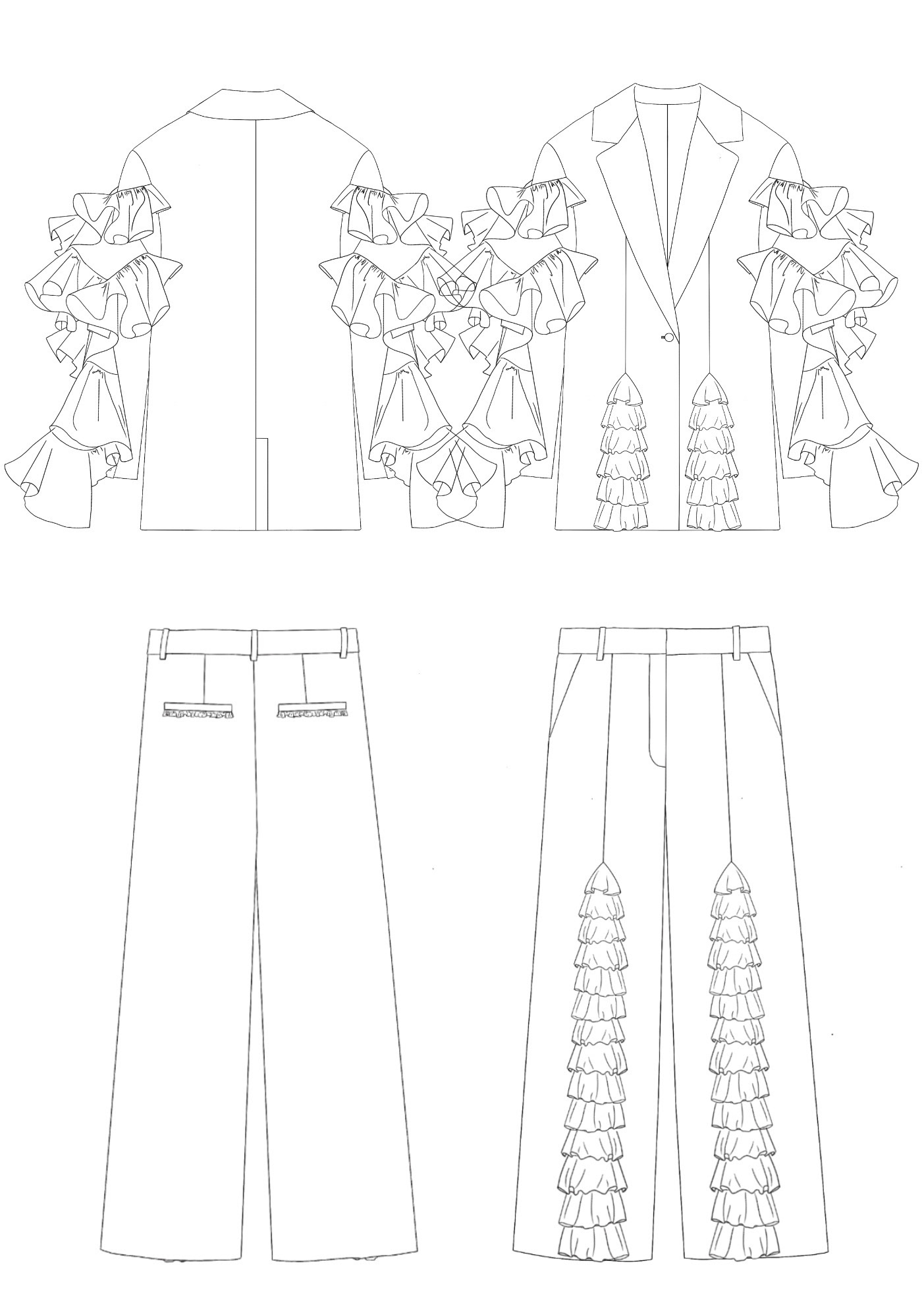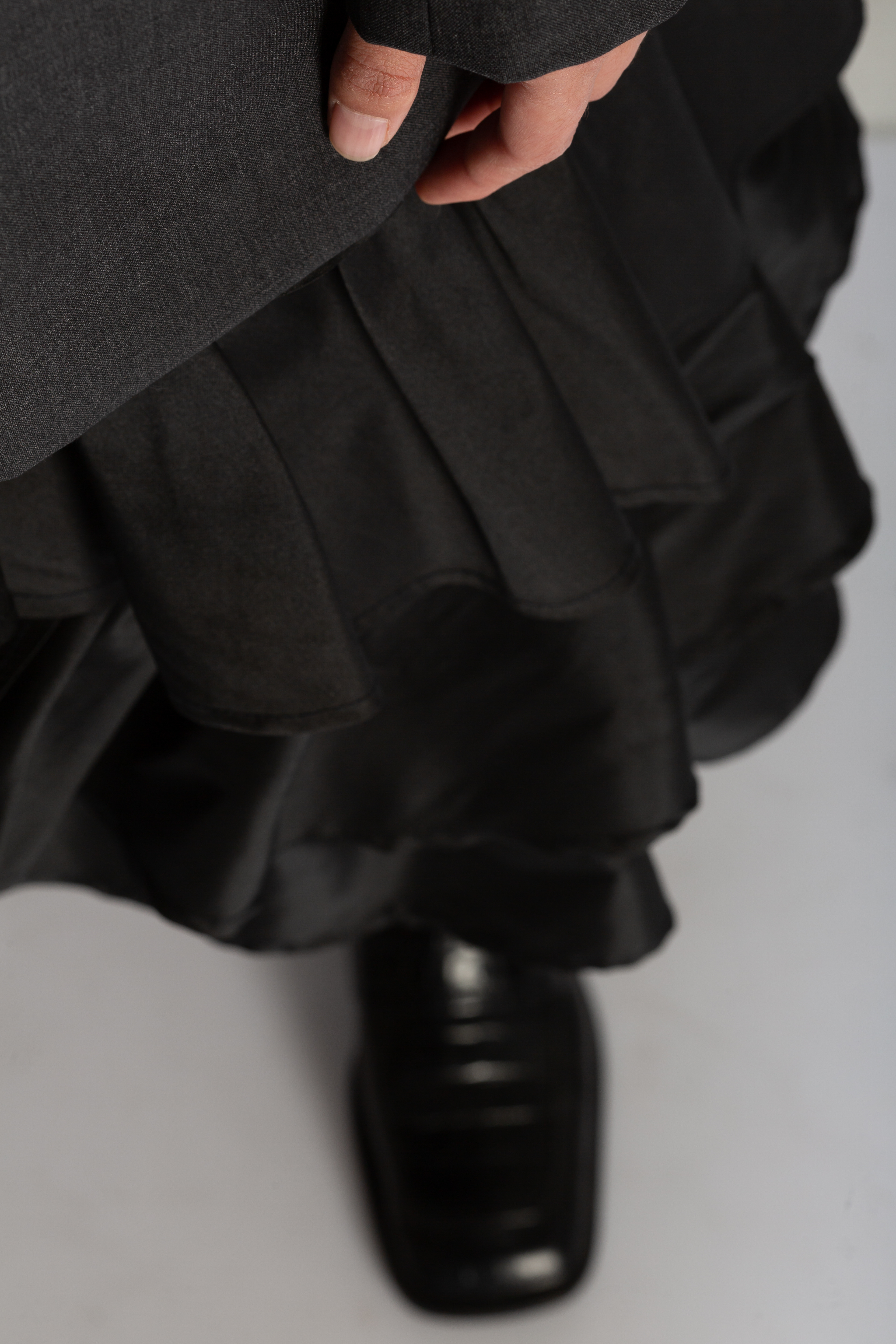 The intricate designs, unique textures, and bold patterns of Flamenco dresses were truly mesmerizing.Ā I drew inspiration from the construction and interpretation that Balenciaga gave to the folds in the flamenco dress, which added a beautiful and dramatic element to the costume, while also referring to theĀ "Sola" dance, which is a solo performance that showcases the skill and artistry of the dancer. I used cuts that were sewn in rotation, valances, and the color black to create a sense of drama and movement in my design.Ā
